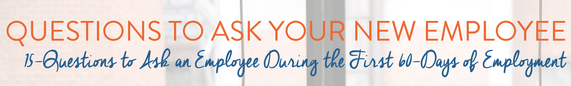 These are 15-questions to ask an employe during the first 60-days of employment. Learn quickly if the new job is living up to your new employee's expectations. Many times new employees feel a little lost and alone - Let your new team member know they are valued!